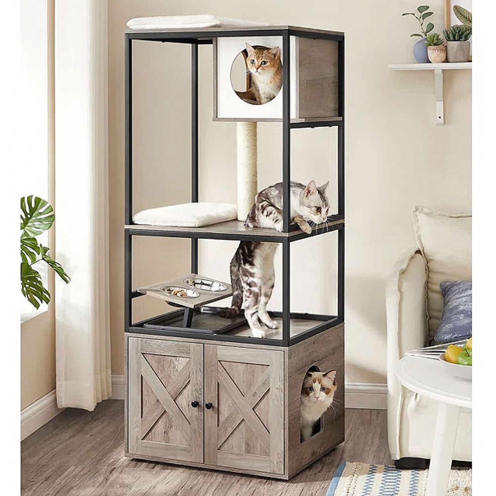 . This modern industrial cat tree and litter box enclosure is an all-in-one haven for your feline friends Our cat towers incorporate multiple places to perch such as raised platforms to offer bird's eye views and bottom hide-a-aways for.